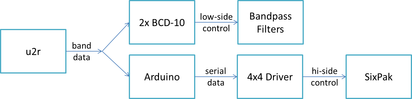 - My Microham μ2r controller has simple BCD band decoder outputs for both radios, but I’m already using that to switch my bandpass filters (using a couple Unified Microsystems BCD-10 boards). I don’t have any other readily available source of band data so I need a solution that can share this one.